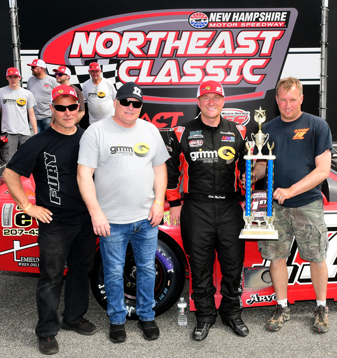 Classic. DJ Shaw #60 and Mike Hopkins #15 led the SLM pack to the green with Hopkins taking the lead over Shaw, Corey Hall #83, and Eddie MacDonald #17ma. MacDonald worked his way up to second by lap 15 and passed Hopkines on lap 16. Red flags then stopped the show twice as Trevor Sanborn #44 hit the turn two wall and caught fire after contact with Dennis Spencer on lap 19. Then on lap 23 Nick Lascula #39L tangled with Josh King #21 in turn one. ‘The Outlaw’ Eddie MacDonald showed the way as the class of the field following the competition caution while DJ Shaw, Ben Rowe and New Brunswick’s Hall battled for second. The lap 41 caution for debris allowed the field one final chance at Eddie MacDonald but The Outlaw outgunned the field with DJ Shaw and Johnny Clark rounding out the podium. The win marks back to back victories for the #17ma and is the 13th for MacDonald at New Hampshire Motor Speedway in a variety of PASS, ACT, and Busch North events. |